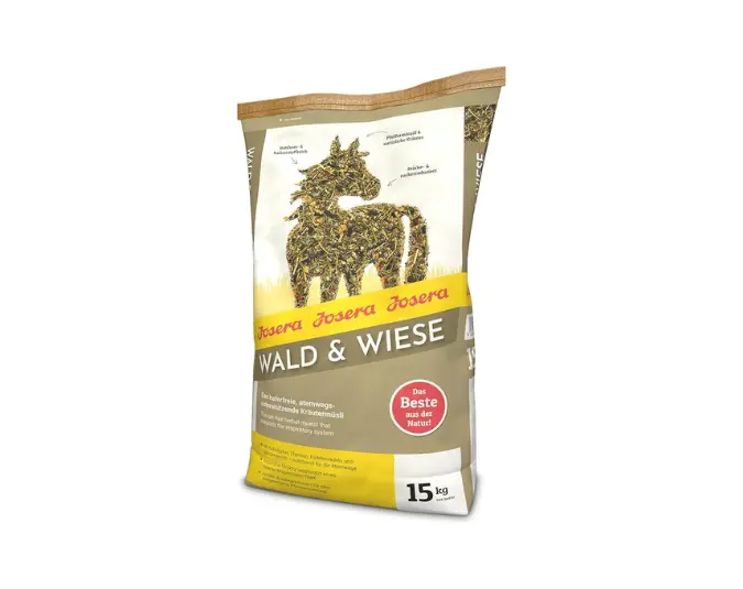 JOSERA Wald & Wiese (1 x 15 kg) | Premium Pferdefutter - das atemwegsunterstützende Kräutermüsli| haferfrei |Stärke- & zuckerreduziert | 1er Pack