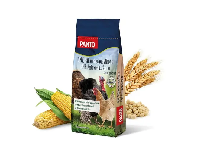 PANTO Hühnerfutter Putenmastkorn PMK/Hähnchenmastkorn HMK 25 kg – gekörntes Geflügelfutter (3mm) für die Mast- Alleinfuttermittel für Hühner, Gänse, Enten, Pute
