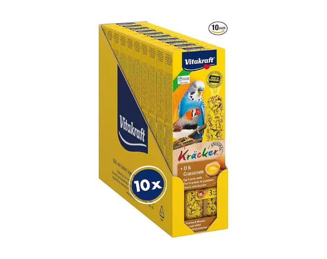 Vitakraft Kräcker, mit Ei und Grassamen, Knabberstangen für Sittiche und Exoten, in Vorratsgröße, ohne Zusatz von Zucker (10x 54g)